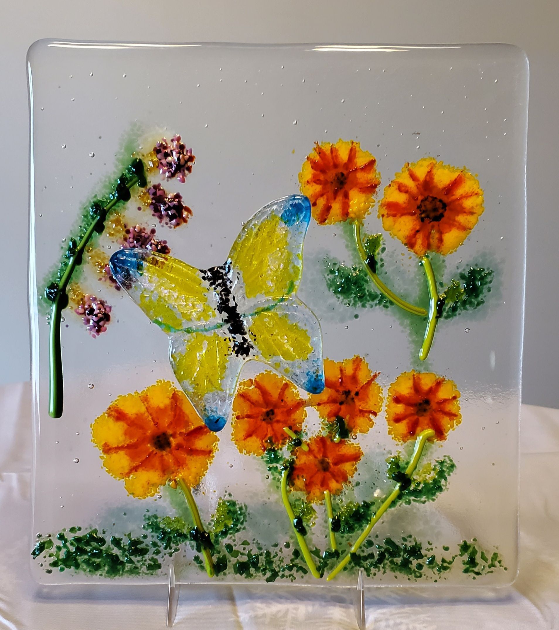 I specialize in glass fusion art! I'm self taught and each piece is unique and one-of-a-kind.